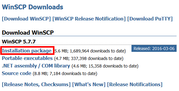 TOPページ以外が英語になっているみたいなので、面倒な人はこの下のURLでアクセスして、赤枠の箇所の「Installation package」を選択してください。