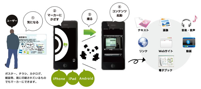 他には、Googleさんで検索したらでてきた印刷物にかざすと動画が流れる「COCOAR」というものもあります。