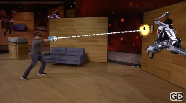 VRのようにゴーグルをつけるのですが、これは現実と仮想現実の融合というイメージです。